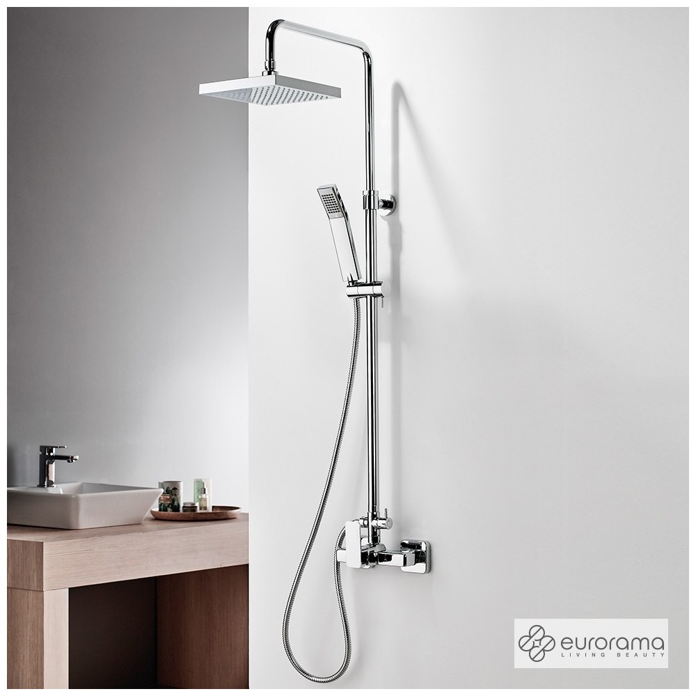 Μπαταρία ντουζιέρας θερμομικτική QUADRA 2 εξόδων με κολώνα Φ20/25 mm ρυθμιζόμενου ύψους 83-144 cm, ανακλινόμενη κεφαλή 20x20 cm & τηλέφωνο Anticalcare με άθραυστο σπιράλ 1.5m, EURORAMA Ιταλίας