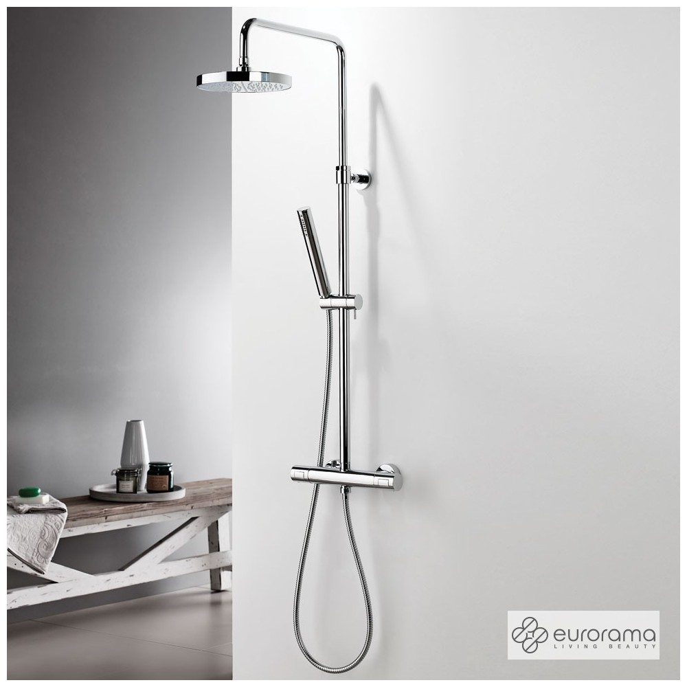 Μπαταρία ντουζιέρας θερμοστατική THERMO ROUND 2 εξόδων με κολώνα Φ20/25 mm ρυθμιζόμενου ύψους 76-137 cm, ανακλινόμενη κεφαλή Φ20