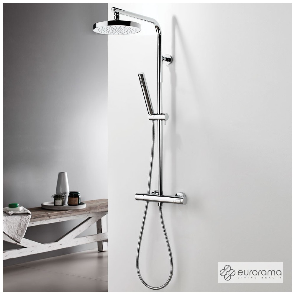 Μπαταρία ντουζιέρας θερμοστατική THERMO ROUND 2 εξόδων με κολώνα Φ25 mm σταθερού ύψους 110 cm, ανακλινόμενη κεφαλή Φ20 cm &τηλέφ