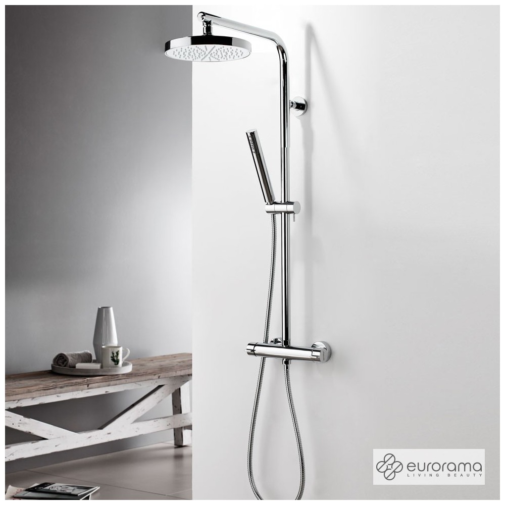 Μπαταρία ντουζιέρας θερμομικτική 2 εξόδων με κολώνα σταθερού ύψους 110 εκ., κεφαλή ντουζ στρόγγυλη Φ20 εκ., τηλέφωνο anticalcare