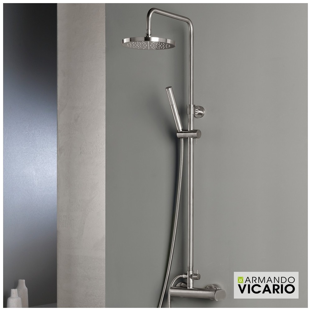 Μπαταρία ντουζιέρας θερμομικτική SLIM 2 εξόδων με κολώνα Φ20/25 mm ρυθμιζόμενου ύψους 83-144 cm, ανακλινόμενη κεφαλή Φ20 cm & τη
