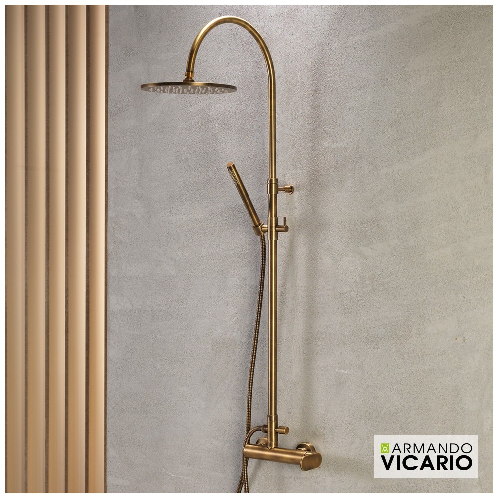 Μπαταρία ντουζιέρας θερμομικτική SLIM 2 εξόδων με κολώνα Φ20/24mm ρυθμιζόμενου ύψους 94-122 cm, ανακλινόμενη κεφαλή Φ25 cm & τηλ