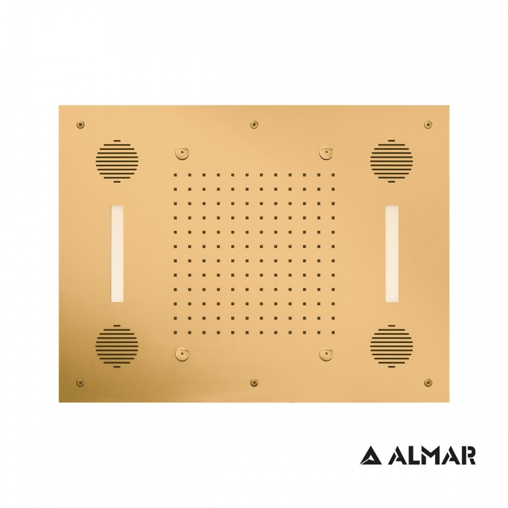 Κεφαλή ντους οροφής εντοιχισμού Temptation 63x48 εκ. 2 ροών (βροχή ή υδρονέφωση), με ηχοσύστημα bluetooth, χρωματοθεραπεία & remote control, από ανοξείδωτο ατσάλι, Almar Ιταλίας