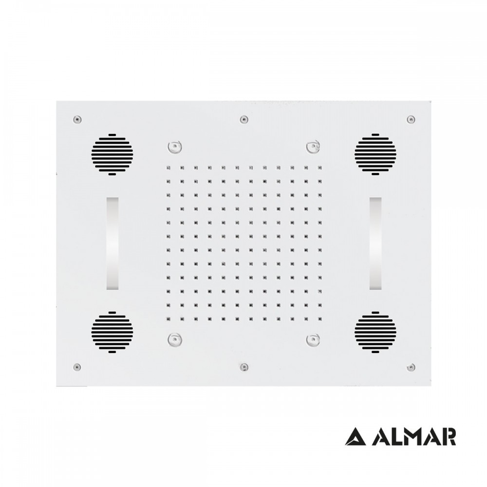 Κεφαλή ντους οροφής εντοιχισμού Temptation 63x48 εκ. 2 ροών (βροχή ή υδρονέφωση), με ηχοσύστημα bluetooth, χρωματοθεραπεία & remote control, από ανοξείδωτο ατσάλι, Almar Ιταλίας