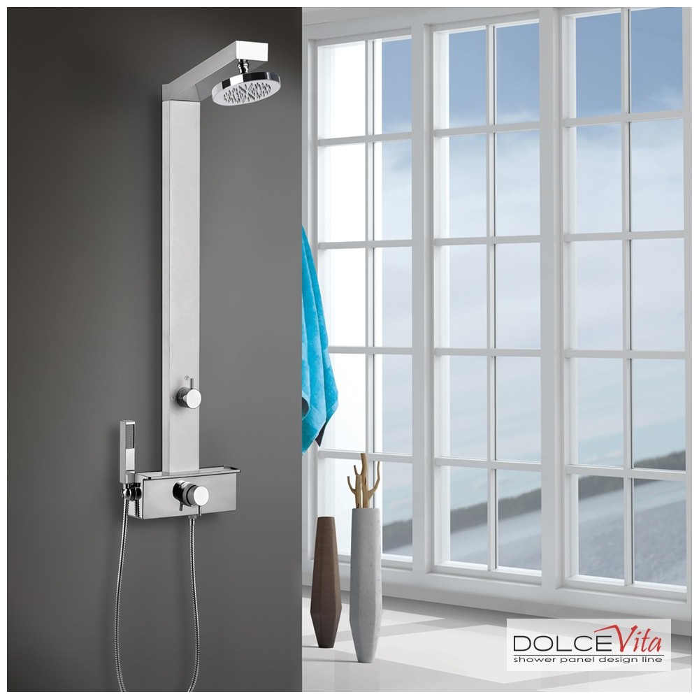 Στήλη ντους GEMMA PLUS με τηλέφωνο ντους ''anticalcare'', σπιράλ 1,50μ., σαπουνοσπογγοθήκη, ανακλινόμενη κεφαλή ντους ''anticalcare'' Φ15 εκ., θερμομικτική μπαταρία με εκτροπέα 2 εξόδων, DROP Ιταλίας