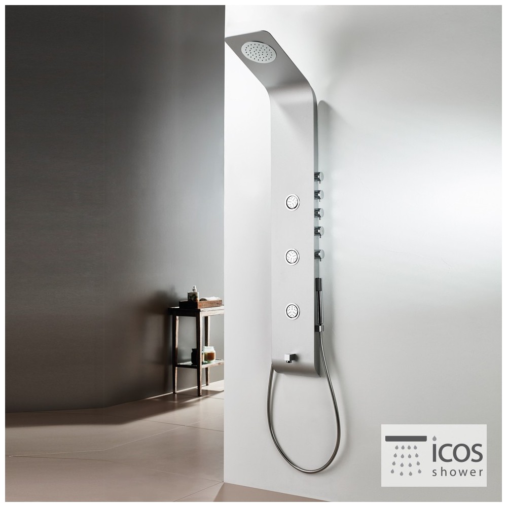 Στήλη ντους - υδρομασάζ θερμομικτική LETE ICOS SHOWER ύψους 140 εκ. από μασίφ αλουμίνιο. Με εξόδους σε: ντους κεφαλής,3 jet υδρομασάζ, στόμιο πλύσης ποδιών, τηλέφωνο