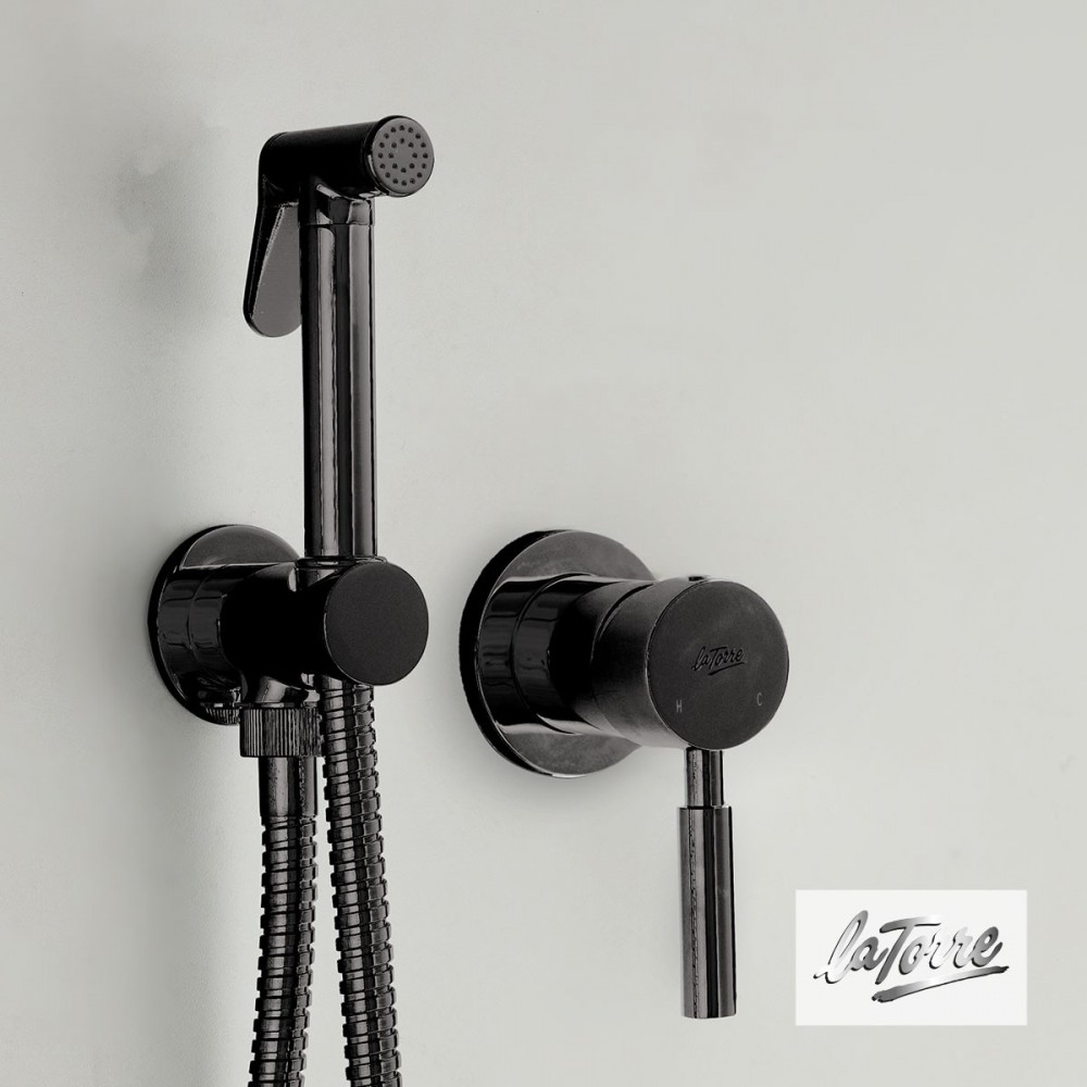 Εντοιχιζόμενος μίκτης Tayatop Flush-Mix για πλύση υγιεινής ή καθαρισμό λεκάνης, με: παροχή τοίχου με ενσωματωμένο στήριγμα τηλεφώνου, τηλέφωνο με αυτόματο stop & μεταλικό σπιράλ 1m La Torre Ιταλίας